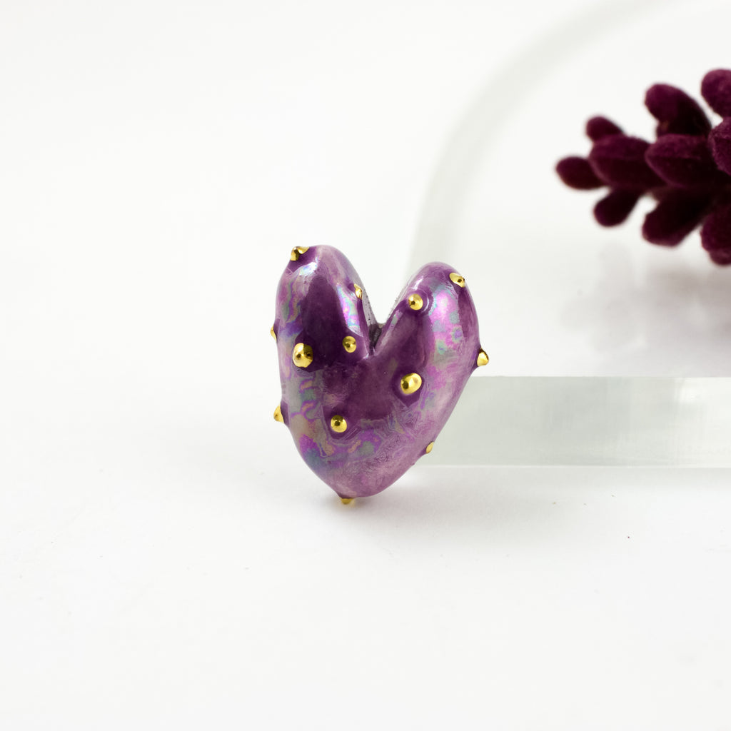 Purple heart-shaped brooch with small gold dots – Aiste Jewelry