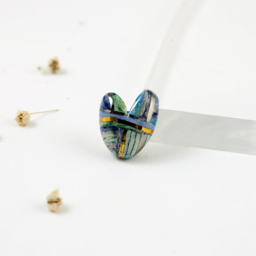 Mažytė dryžuota mėlyna širdelės formos sagė