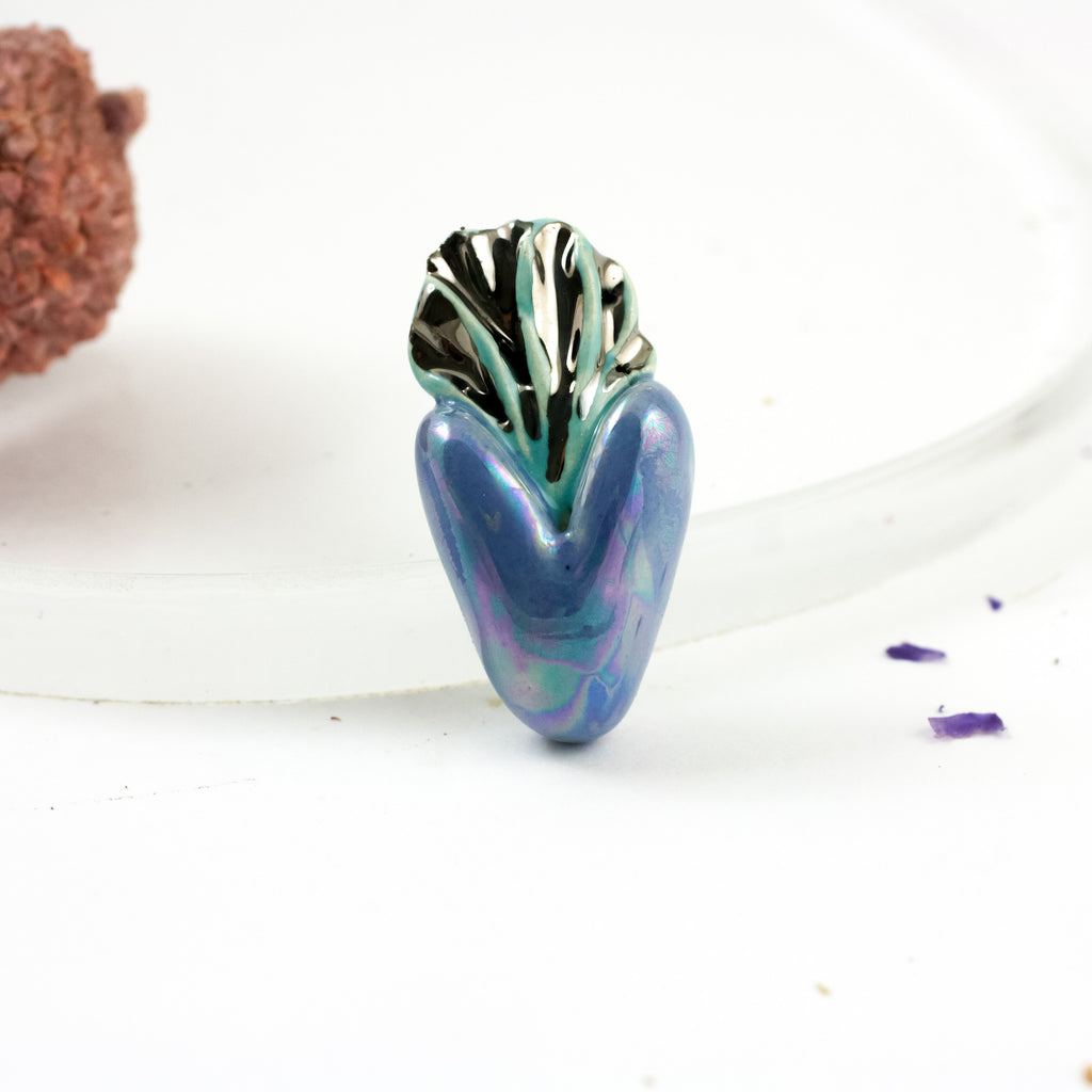 Bet kokio papuošalo idėja ateina pirma. Paprastai ji mane pasiekia paslaptingais būdais, bet kuriuo paros metu. Nupiešta ant popieriaus, kruopščiai apgalvota ir kurį laiką gyvenanti mintyse. Tik tada galiu paimti balto molio gabalėlį ir pradėti kurti magiją. Švelnūs pirštų prisilietimai įvaldo formą, tada leidžiu jai išdžiūti... Po ilgo degimo keramikos krosnyje proceso būsima maža sagė paruošiama glazūros voniai, o po degimo virsta šiuo minkštu kūriniu. Tada ateina aukso ir platinos blizgesio dekoravimo metas ir... voila! Sagė pagaliau pasiruošusi susitikti su jumis asmeniškai. Mėgaukitės ir būkite apipiltos komplimentais.