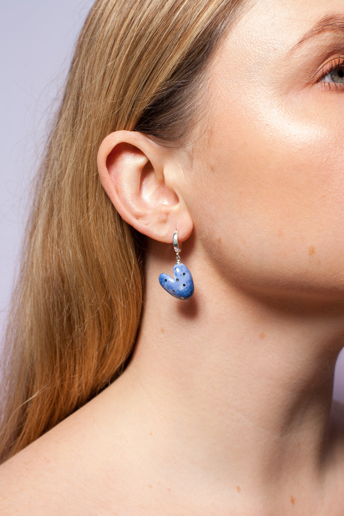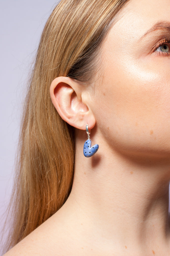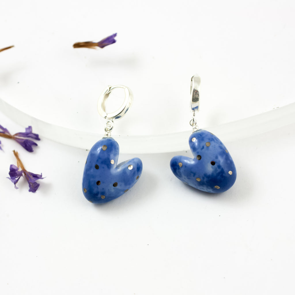 Kabantys auskarai sidabriniais užsegimais su auksuota keramika: