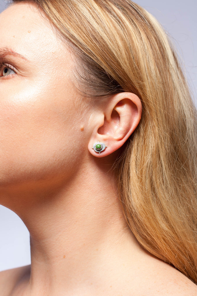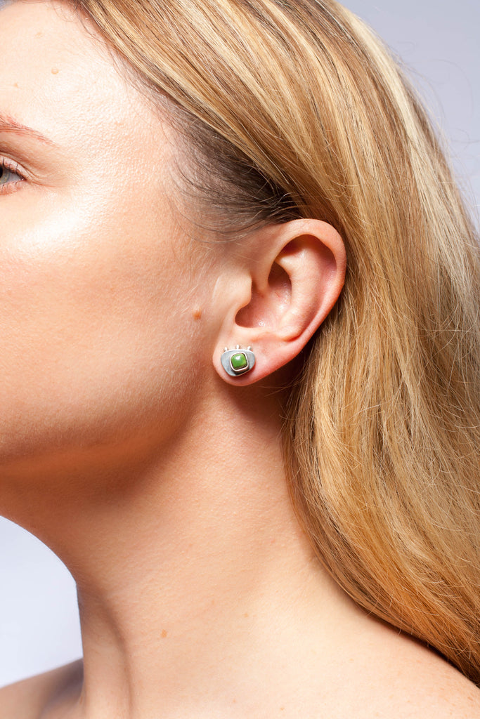 Tamsiai žali keraminiai auskarai su juodintu sidabru