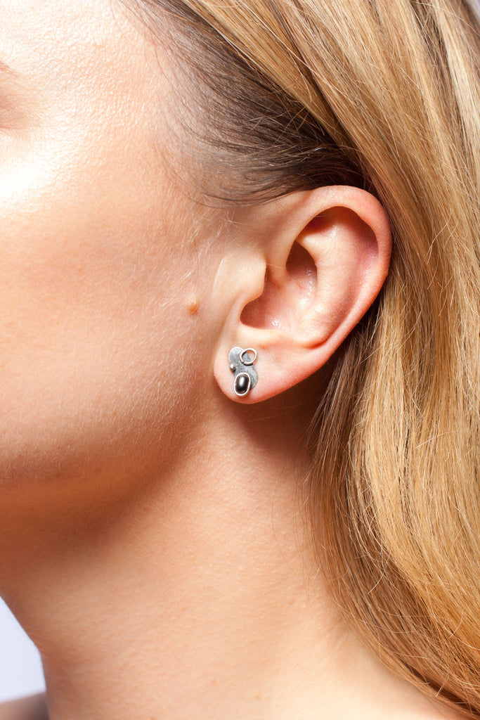 Tamsūs, skirtingi auskarai su juodintu sidabru