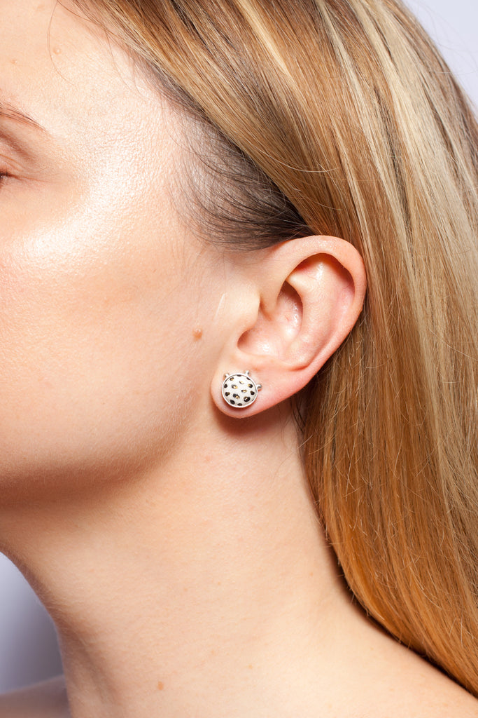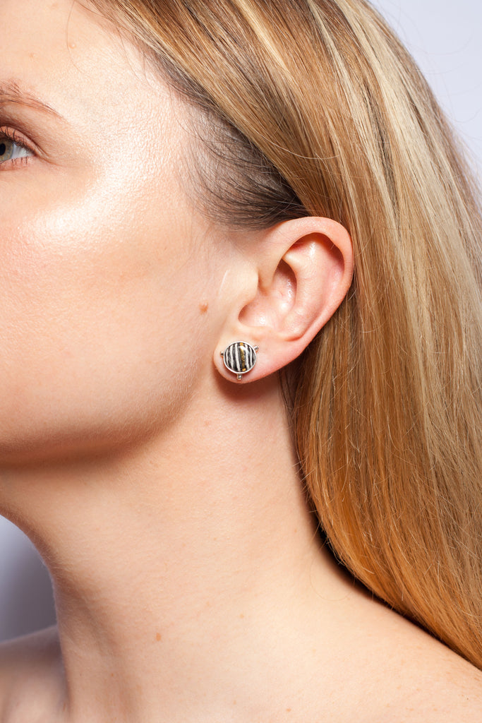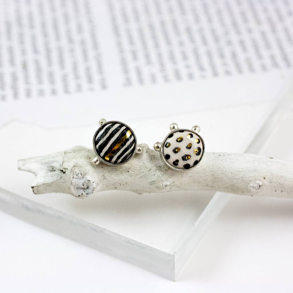 Skirtingi mini auskarai ABSTRACT su juodomis linijomis ir taškeliais