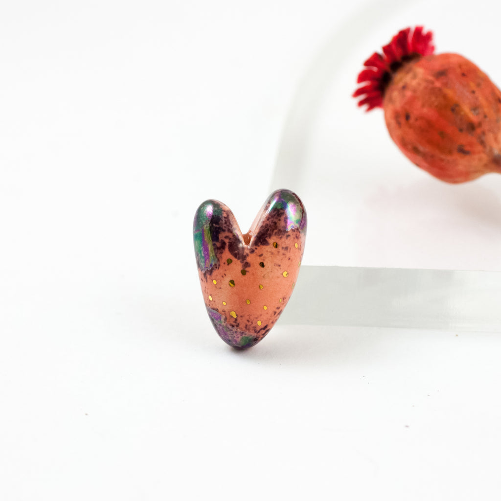 Rožinės ir baklažano spalvos širdelės formos sagė