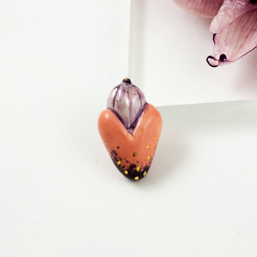 Bet kokio papuošalo idėja ateina pirma. Paprastai ji mane pasiekia paslaptingais būdais, bet kuriuo paros metu. Nupiešta ant popieriaus, kruopščiai apgalvota ir kurį laiką gyvenanti mintyse. Tik tada galiu paimti balto molio gabalėlį ir pradėti kurti magiją. Švelnūs pirštų prisilietimai įvaldo formą, tada leidžiu jai išdžiūti... Po ilgo degimo keramikos krosnyje proceso būsima maža sagė paruošiama glazūros voniai, o po degimo virsta šiuo minkštu kūriniu. Tada ateina aukso ir platinos blizgesio dekoravimo metas ir... voila! Sagė pagaliau pasiruošusi susitikti su jumis asmeniškai. Mėgaukitės ir būkite apipiltos komplimentais.