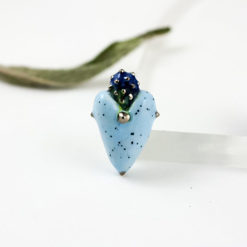 Dangaus mėlynumo spalvos širdelės formos sagė su platinos blizgesiu