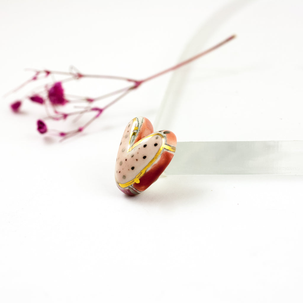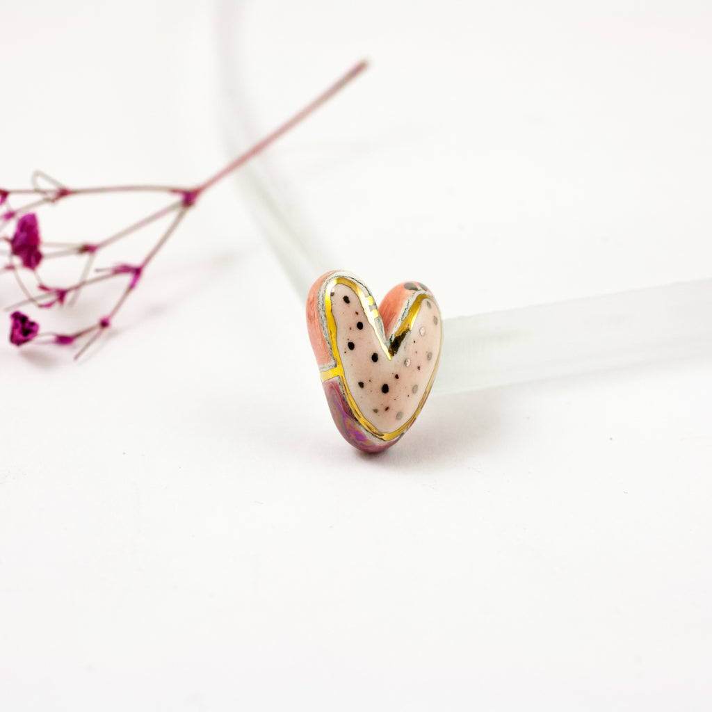 Maža raudona ir rožinė širdelės formos sagė