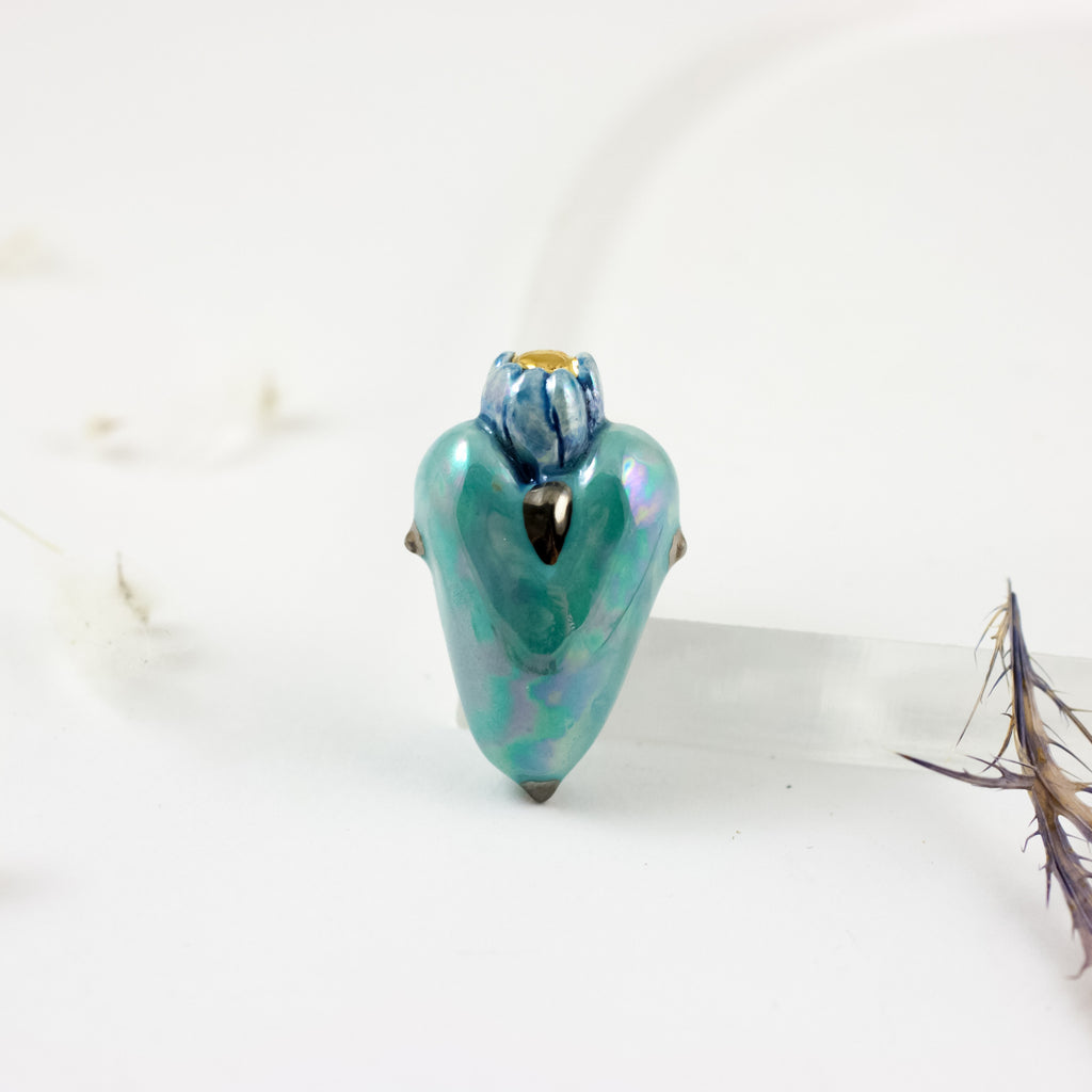 Bet kokio papuošalo idėja ateina pirma. Paprastai ji mane pasiekia paslaptingais būdais, bet kuriuo paros metu. Nupiešta ant popieriaus, kruopščiai apgalvota ir kurį laiką gyvenanti mintyse. Tik tada galiu paimti balto molio gabalėlį ir pradėti kurti magiją. Švelnūs pirštų prisilietimai įvaldo formą, tada leidžiu jai išdžiūti... Po ilgo degimo keramikos krosnyje proceso būsima maža sagė paruošiama glazūros voniai, o po degimo virsta šiuo minkštu kūriniu. Tada ateina aukso ir platinos blizgesio dekoravimo metas ir... voila! Sagė pagaliau pasiruošusi susitikti su jumis asmeniškai. Mėgaukitės ir būkite apipiltos komplimentais.