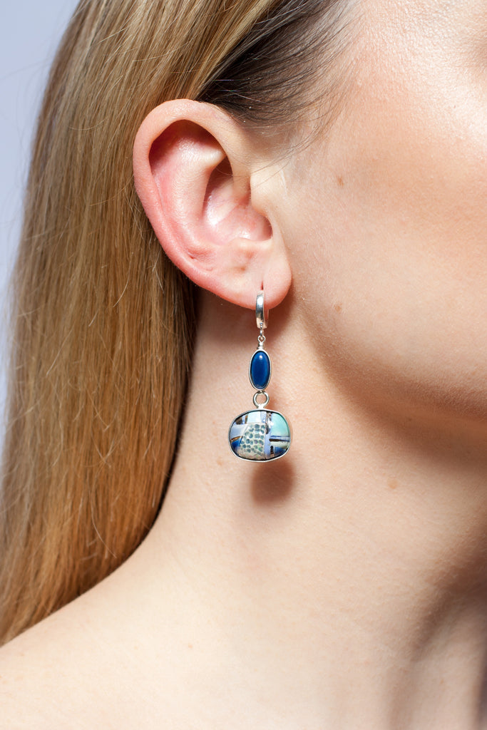 Blue geometrical ABSTRACT dangle silver earrings