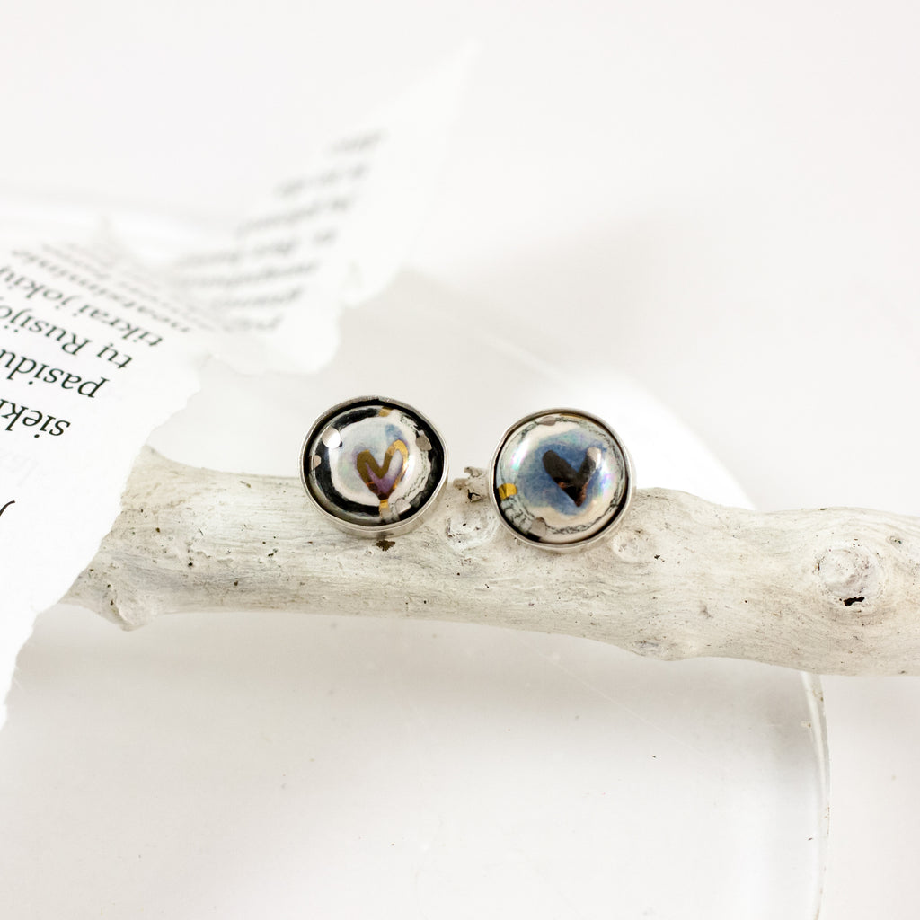 The result of a very interesting creative journey. So small, but born from a huge piece of clay... Thought out down to the smallest detail, they are baked in the oven three times, changing their shape over and over again. Under a layer of glaze, they become as soft as glass, then shine when covered with fine metal lusters. Finally, encased in a silver robe, they are ready to delight!