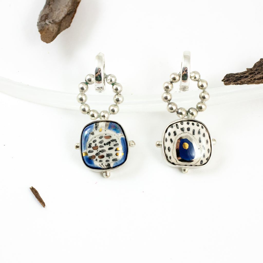 BON BON Blue and white earrings with dots – Aiste Jewelry