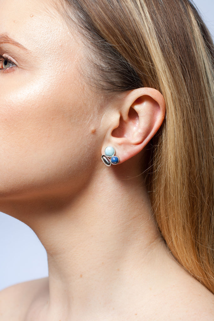 Light and dark blue bubble earrings with platinum luster