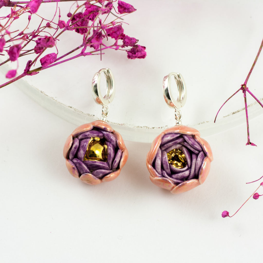 These two pink flower buds are ready to blossom and reveal their color inside. Soft, romantic, dreamy mismatched creations. You can not find two even flowers in nature, neither in my work - that's the charm!