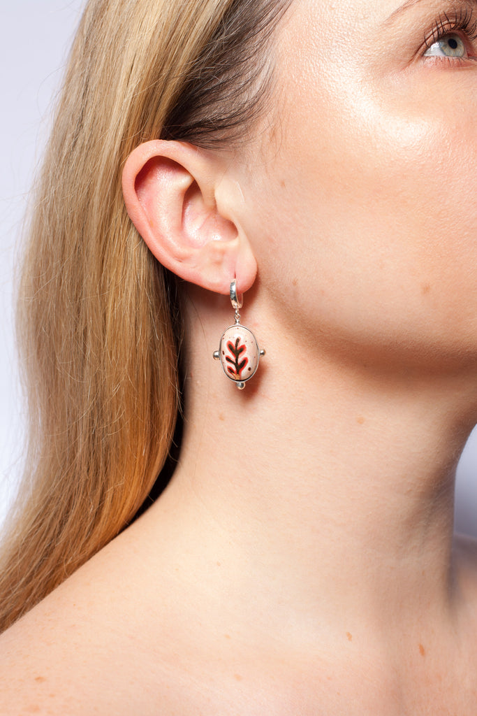 Pink gold-plated ornament ceramic earrings – Aiste Jewelry